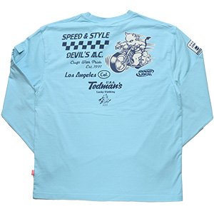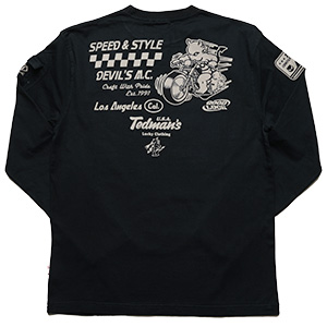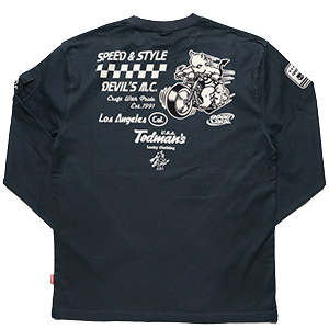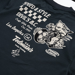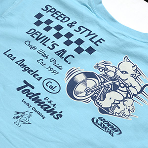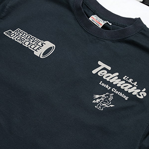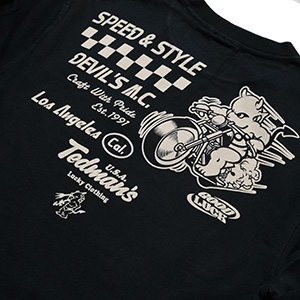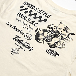 背中にプリントされた疾走感あるバイカー・テッドマンのグラフィック。
