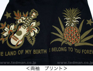 シンプルに描かれた古の時代に使われていた帆船と、ハワイの地図がプリントされる。優しい色使いがレトロな雰囲気を漂わせる。