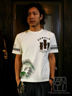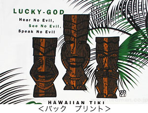 ハワイのラッキーゴッド「ティキ」が3体配置され、それぞれが見ざる、聞かざる、言わざるの形をしているというひとヒネリ効いたデザイン。