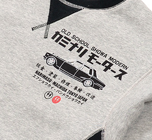 カミナリ初リリースとなるクルーネックスウェットが新登場。グラフィックはシャドーシリーズのハコスカ4ドアモデル。さりげなく前後のキャリパーは赤の対向ピストンを装着させている所なんかもカミナリならではのポイント。