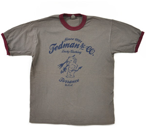 メイドインU.S.A.の丸胴型ヴィンテージ風テッドマンTシャツのご登場です。ボディの素材感を引き立たせる為にシンプルなラバープリントの2型を採用。 よりヴィンテージ感をお楽しみ頂ける上、後染めなのでサイズ感もほぼ通常サイズ に近い仕上がりです。生粋のアメリカンTシャツとしての登場です。 ボディは本当のデッドストックですので硬めのコットン等、通常のテッドマンTシャツ との違いを感じて頂ける商品です。 デッドストック素材ですので今回を逃すと再販の予定はございませんので是非!!