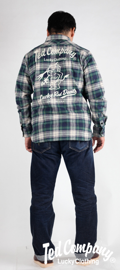 新作チェックネルシャツ第二弾が登場!!前回大好評のブロックチェックからタータンチェックにモデルチェンジし、背中にはテッドマンがチェーン刺繍で施された至極の一枚!秋のコーディネートの軸になるイチオシ商品です。