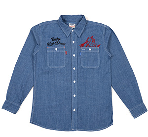 オーソドックスなテッドマンのグラフィックをチェーン刺繍で表現したシャンブレーシャツが新登場!
