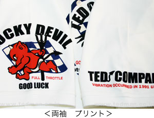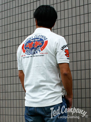 ポロシャツを造ろうと思ったのが4、5年前のこと、ワンポイント刺繍でTEDちゃんを胸に、と考えたがそれでは能が無い!TEDMANの独特なグラフィックをドカーンと表現したい造り始めたが、鹿の子の凹凸が邪魔をして綺麗に表現出来なかったのです...。しかし諦めず努力の甲斐あってジャージャジャーン!!なんと完成しました!!
