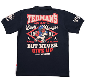 アメフトテッドの登場!チーム、レッド・デビルスがリーグ優勝を目指す勇ましい姿がデザインされている。