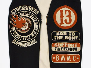 ドクロがチョッパーで暴走するという、ハーレー乗りには刺さるデザイン。