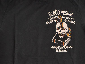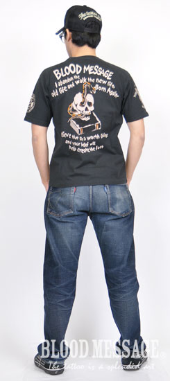 生まれ変わる=古い生活を放棄し、新しい生活を歩む。そんな言葉が込められたメッセージ性の強いアイテム。図案はスカルとスネークという組み合わせ。同ブランドらしい雰囲気を醸し出す一枚は意味を知って着てほしい。