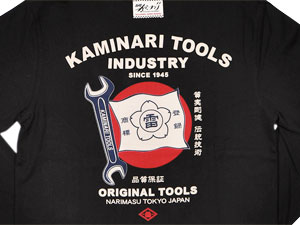 「カミナリツールズ」という、架空の工具ブランドをイメージ。質実剛健、伝統技術というコピーがいかにも戦後の日本を支えた職人が集うメーカーという感じ。着るだけでできる男に見えるかも?