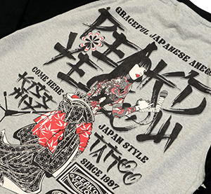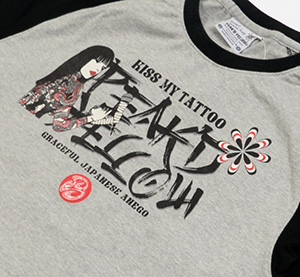 毎回好評のキスマイタトゥーシリーズの姉御デザイン。荒々しい筆文字がピークドの和とマッチしている。